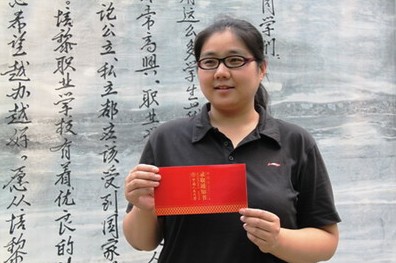 《北京自考三十年》画册是北京教育考试院为纪念北京高等教育自学考试制度建立30周年而编辑出版的专题画册,内容分为六篇:领导关怀、创业篇、发展篇、创新篇、考生风采、展望篇。在“考生风采”篇中仅登载了六位考生的事迹,北京培黎职业学院2000级法律专业文凭考试学生刘旭的事迹榜上有名。 图一、北京教育考试院出版《北京自考三十年》画册 在《北京自考三十年》画册“考生风采”篇,以“自强不息,顽强拼搏”的通栏标题下,配有刘旭站在温家宝总理亲书校训和复信纪念碑前手持中国人民大学博士生录取通知书的照片,旁边的说明文是:“刘旭。中共党员,北京培黎职业学院2000级法律专业文凭考试学生。入学前,她是一所中专学校的学生,文化基础并不是很好。在培黎三年,刘旭刻苦学习,担任了系学生会副主席,先后获得培黎学院一等奖学金和特等奖学金。毕业后,她参加了北京市高等教育自学考试法律专业本科段的学习,2004年获得北京大学高自考的毕业证书。2006年她考入北京工商大学攻读经济法硕士学位,2010年3月以总分第一名的成绩考取了中国人民大学的博士研究生。”