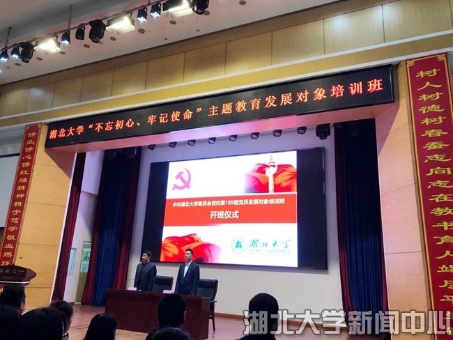 湖北大学“不忘初心、牢记使命”主题教育发展对象培训班日前开班,全校663名学员参加培训。本次培训班旨在结合“不忘初心、牢记使命”主题教育,引导发展对象自觉用习近平新时代中国特色社会主义思想武装头脑、指导实践、推动工作。校党委副书记侯勇出席开班仪式。